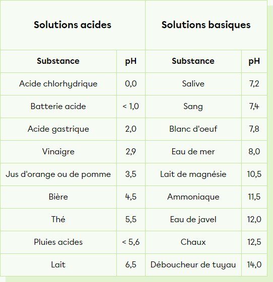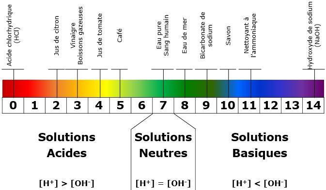 L’échelle pH est divisée en échelons de 0 à 14, 0 étant le degré d’acidité le plus élevé alors que 14 est le degré d’acidité le plus faible.